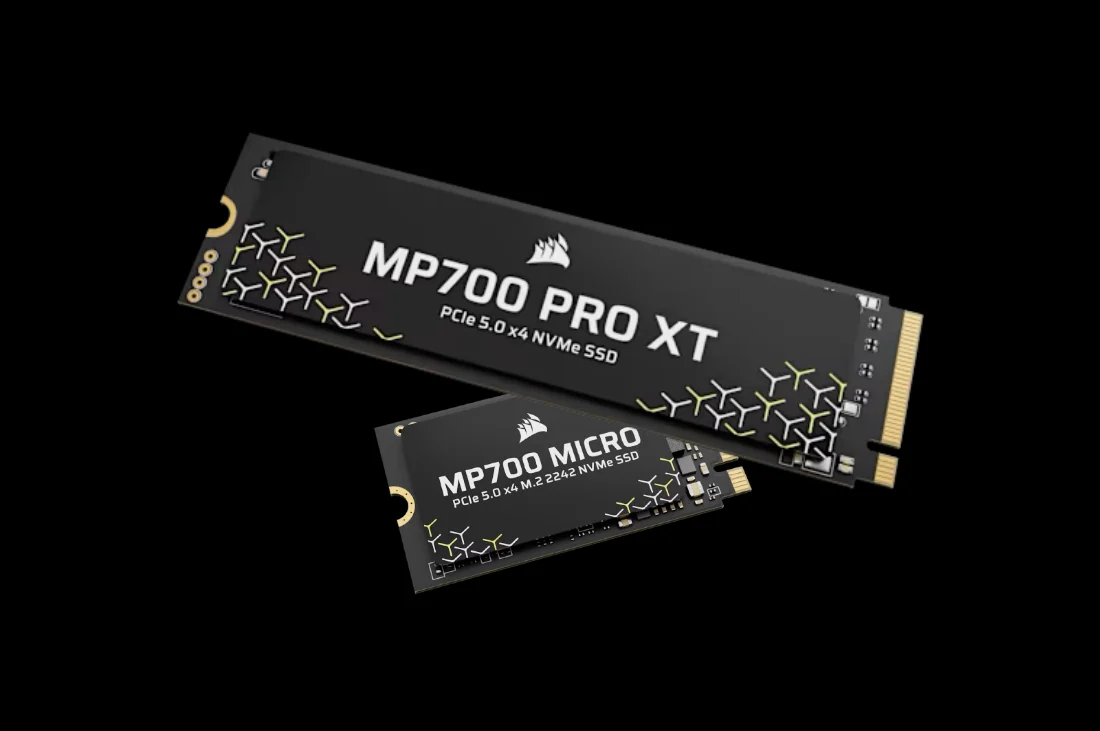 Corsair has introduced two new PCIe 5.0 NVMe M.2 SSDs that target different segments of the consumer storage market. The MP700 PRO XT aims squarely at enthusiasts seeking maximum Gen5 performance, while the MP700 MICRO uses the 2242 (42mm) form factor to bring PCIe 5.0 speeds to compact systems and thin-and-light devices. Both drives became available on October 28, 2025.